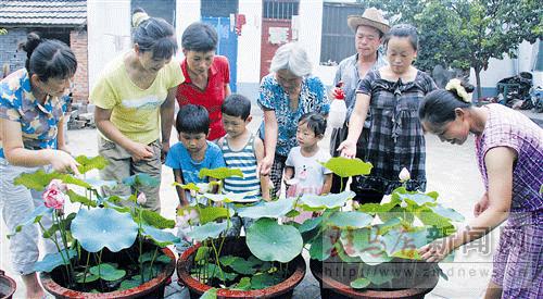 在劉輝家的樓頂、庭院,300多盆盛開的荷花,粉綠色的荷葉襯托著粉紅、純白、鵝黃色的花朵,一花一彩,一花一姿,吸引了很多村民來觀賞。村民們贊嘆,原來只在電視上看過公園里有這樣好看的荷花,沒想到咱們村的劉輝也把荷花養(yǎng)得和電視上的一樣漂亮。村民們都夸劉輝有本事。