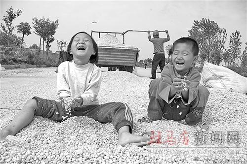 摘要: 9月23日,天公終于露出笑臉,我市近郊農(nóng)民紛紛搶收成熟的秋作物。他們有的晾曬玉米,有的收獲花生,展現(xiàn)出一幅幅秋收?qǐng)D畫(huà)。據(jù)了解,由于今年雨水較大,秋作物的產(chǎn)量受到一定影響。 兩名兒童在晾曬的玉米堆上玩