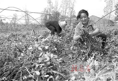 驛城區(qū)劉閣街道辦事處農(nóng)民在收花生。 記者 李
