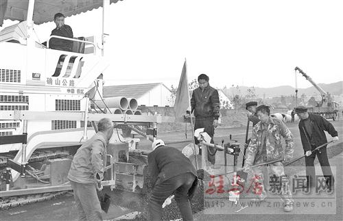 圖為工人們正加班加點為中原大道南段建設(shè)工程鋪設(shè)路面。 記者 張新義 通訊員 段陽東 攝影報道