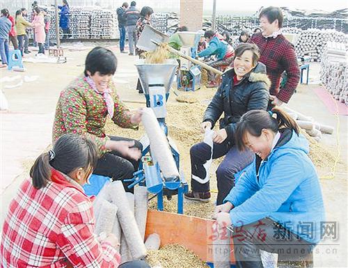 春節(jié)臨近,驛城區(qū)胡廟鄉(xiāng)葉莊村迎來了本村招商引資項目——155畝食用菌種植園區(qū)投產(chǎn),讓該村農(nóng)民在農(nóng)閑之時足不出村就可就業(yè)。圖為該村農(nóng)民在食用菌種植園區(qū)內(nèi)分裝食用菌菌種。 通訊員 殷建軍 攝