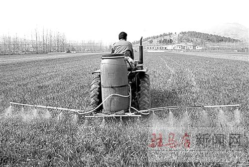 連日來(lái),確山縣廣大農(nóng)民群眾抓住天氣晴好的有利時(shí)機(jī),積極進(jìn)行小麥病蟲害防治,有效地防止了病蟲害和雜草的危害,為夏糧豐收打好基礎(chǔ)。圖為該縣三里河鄉(xiāng)秀山村農(nóng)民楊建成正在噴灑農(nóng)藥。通訊員 李 璞 段陽(yáng)東 攝影報(bào)道