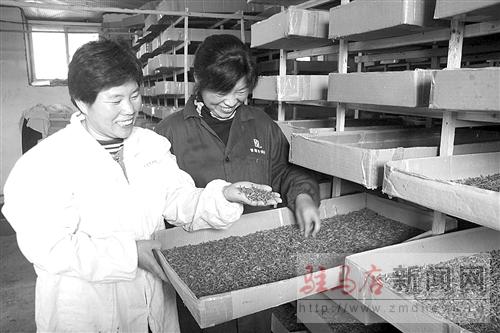 河南金元農(nóng)業(yè)科技有限公司是一家集培育養(yǎng)殖、技術(shù)服務(wù)于一體的現(xiàn)代化企業(yè)。年可繁育優(yōu)質(zhì)生豬近萬頭、金蟬1萬公斤、獺兔1萬只、土元1.2萬多公斤、黃粉蟲5萬多公斤、金銀花4萬公斤,可安排就業(yè)人員56人,并帶動了周圍100多戶農(nóng)民致富。圖為公司管理人員正在查看黃粉蟲生長情況。記者 王 朝 攝
