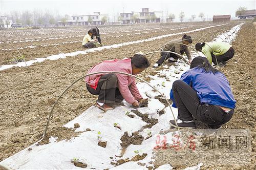 摘要: 正陽天潤現(xiàn)代農(nóng)業(yè)有限公司是一家集種植、養(yǎng)殖、觀光、加工為一體的高效循環(huán)現(xiàn)代農(nóng)業(yè)公司。近日,該公司百畝西瓜園區(qū)內(nèi),工人們正抓住天氣晴好、土壤墑情良好的有利時機(jī)移栽瓜苗。記者 郭連山 攝