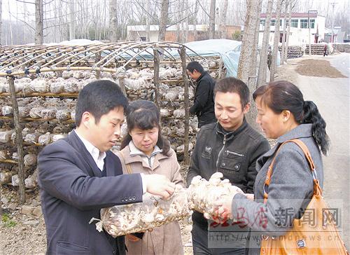 正值香菇收獲的黃金時節(jié),確山縣石滾河鎮(zhèn)香菇生產(chǎn)基地迎來一批批購買香菇的商客和前來學(xué)習(xí)香菇栽培技術(shù)的人們。他們看到這里一路兩旁綿延1公里栽培香菇的棚架和一些饅頭大小的香菇,無不稱贊。圖為近日該鎮(zhèn)技術(shù)員周海龍在向前來學(xué)習(xí)的人們介紹香菇栽培技術(shù)和鑒別香菇質(zhì)量的方法。記者 劉 浩 攝