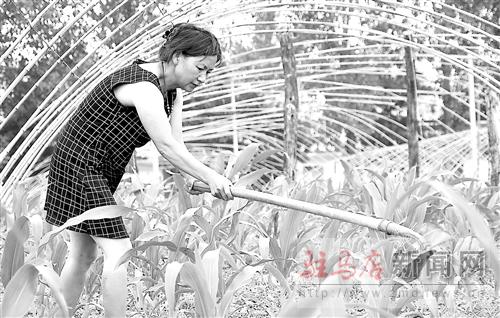 近日,驛城區(qū)老街街道辦事處農(nóng)民在玉米地里進行除草。