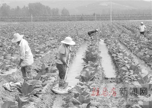 摘要: 面對近期持續(xù)干旱和高溫,市煙草公司充分利用煙水配套工程的作用,采取科室包縣、技術(shù)人員包田塊等得力措施,使移栽后的煙葉喝上“救命水”。圖為確山縣竹溝鎮(zhèn)煙農(nóng)正在為煙葉澆水。 記