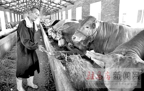近日,在西平縣啟明肉牛養(yǎng)殖基地,工人正在喂牛。該基地占地50余畝,年出欄肉牛3000頭,安排富余勞動(dòng)力30余人,年產(chǎn)值近2000萬(wàn)元。 記者 丁 振 通訊員 胡軍華 攝影報(bào)道