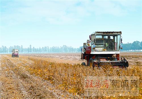 我市重要的大豆產(chǎn)區(qū)——西平縣,今年種植的1.5萬(wàn)畝大豆又迎來(lái)了豐收,預(yù)計(jì)大豆畝均約200公斤。圖為老王坡管委會(huì)群眾正積極組織大型機(jī)械全力搶收豐收的大豆。 記者 丁 振 通訊員 牛齊瑞 攝影報(bào)道