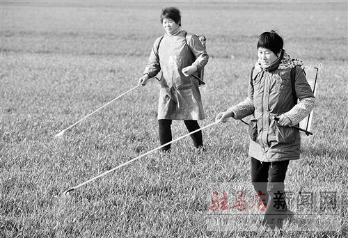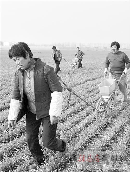 在專家的指導(dǎo)下,李莊村村民通過追肥管理實現(xiàn)小麥強苗壯苗。