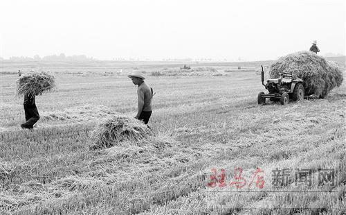 三夏期間,泌陽(yáng)縣廣大群眾收集自家地里的小麥秸稈作為飼料出售,既增加了收入,又避免了焚燒秸稈對(duì)環(huán)境造成的污染。圖為該縣王店鄉(xiāng)肖樓村農(nóng)民正在將小麥秸稈裝車(chē)運(yùn)走。 記者 侯偉峰 通訊員 劉 健 攝影報(bào)道