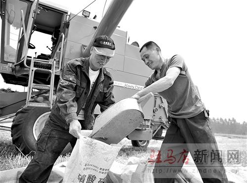 摘要: 5月28日,平輿縣辛店鄉(xiāng)韓坡村農(nóng)民正在裝運(yùn)收獲的小麥。眼下,該縣130多萬畝小麥全部成熟,全縣共投入4600余臺大型收割機(jī)參加三夏麥?zhǔn)諘?zhàn)。據(jù)該縣農(nóng)業(yè)部門預(yù)計,今年又是一個豐收年。通訊員 訾現(xiàn)紅 李亞超 攝