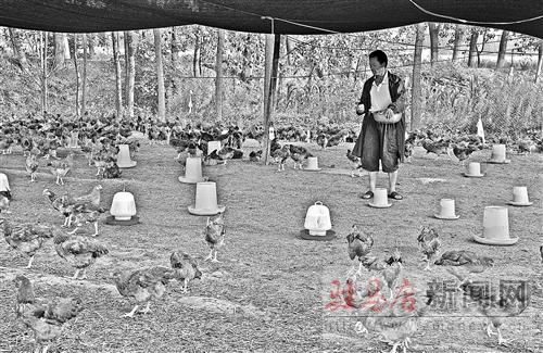 近日,驛城區(qū)香山街道辦事處農(nóng)民薛根成在給雞喂玉米。隨著群眾生活水平的不斷提高,消費(fèi)者對(duì)農(nóng)村散養(yǎng)雞需求日益增加,農(nóng)村飼養(yǎng)的散養(yǎng)雞深受消費(fèi)者的青睞。驛城區(qū)香山街道辦事處積極引導(dǎo)農(nóng)民利用田邊地頭發(fā)展散養(yǎng)雞,為群眾增收廣開門路。記者 郭連山 攝