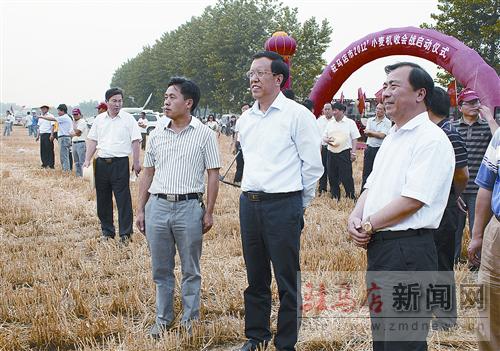 市委副書(shū)記賈英豪(右二)、副市長(zhǎng)戚存杰(右一)參加2012小麥機(jī)收會(huì)戰(zhàn)啟動(dòng)儀式。