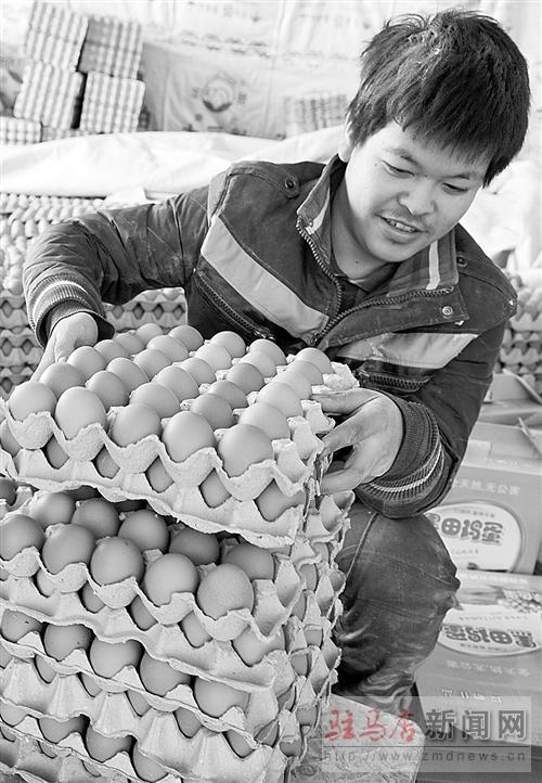 養(yǎng)雞專業(yè)戶在裝雞蛋準備出售。