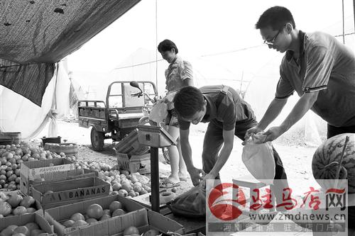 摘要: 6月29日,市民在位于驛城區(qū)順河街道辦事處的欣農(nóng)種植農(nóng)民專業(yè)合作社大棚前選購西紅柿。該合作社由4名返鄉(xiāng)大學(xué)生自主創(chuàng)辦,流轉(zhuǎn)土地50余畝建大棚15座。該合作社2012年9月成立,目前已初見效益。 記者 李