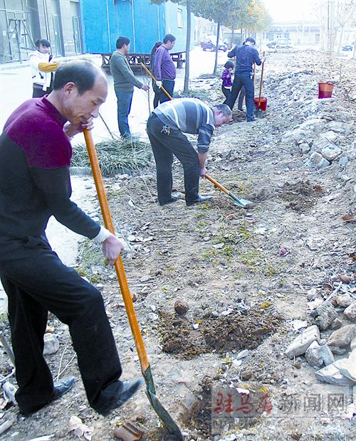 清理垃圾,挖樹坑,種樹苗。昨日上午,市白橋路一巷十分熱鬧,大家干得熱火朝天。該路段垃圾亂堆亂放現(xiàn)象嚴(yán)重。為給居民提供一個良好的居住環(huán)境,驛城區(qū)人民街道向陽社區(qū)的工作人員自籌資金清運該路段的垃圾,并在此種植桃樹80多棵,美化環(huán)境。