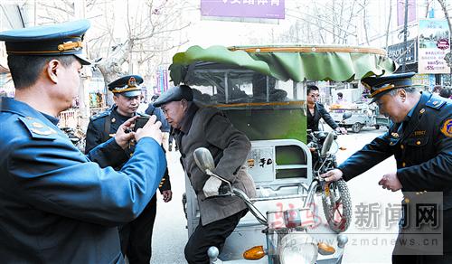 昨天下午,市交警支隊(duì)、驛城區(qū)道路運(yùn)管所聯(lián)合查處市區(qū)“黑三輪”。