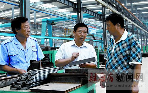 驛城區(qū)委書(shū)記鄭玉林(中)在企業(yè)調(diào)研。