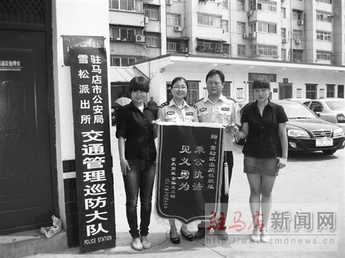 民警接過寫有“秉公執(zhí)法、見義勇為”的錦旗。
