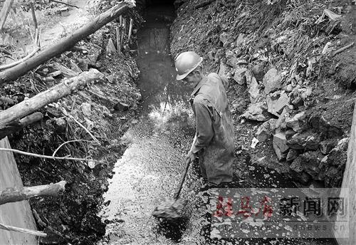 為確保轄區(qū)安全度汛,連日來,驛城區(qū)人民街道辦事處組織人員對轄區(qū)明溝暗渠進行清淤,對各路段建筑垃圾和生活垃圾進行集中清理。目前,已清運垃圾30多車,清淤800多米。圖為工作人員在清理排洪溝內(nèi)淤泥。 記者 鄭付生 通訊員 戶明中 攝影報道
