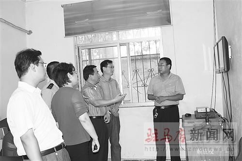 為落實(shí)省委政法委關(guān)于進(jìn)一步加強(qiáng)社會(huì)治安穩(wěn)定工作的要求,近日,驛城區(qū)領(lǐng)導(dǎo)同志帶領(lǐng)區(qū)委政法委、公安等部門(mén)負(fù)責(zé)人深入鄉(xiāng)鎮(zhèn)辦公安派出所、社區(qū)警務(wù)室、社會(huì)治安綜合治理辦公室,就社會(huì)治安穩(wěn)定工作進(jìn)行督導(dǎo)檢查,要求相關(guān)部門(mén)在快速發(fā)展經(jīng)濟(jì)的同時(shí),要確保社會(huì)大局穩(wěn)定。圖為該區(qū)領(lǐng)導(dǎo)同志在順河公安派出所檢查技防時(shí)的情景。 記者 鄭付生 通訊員 李 嘉 攝影報(bào)道