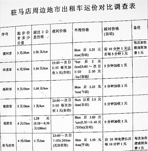 據(jù)了解,此次出租車運(yùn)價調(diào)整只有一套方案。如按照此方案調(diào)整,我市出租車的起步價5元/2公里,超出2公里每公里1.4元。調(diào)整后,我市的出租車運(yùn)價趕超漯河、南陽、信陽等城市,進(jìn)入全省前列。