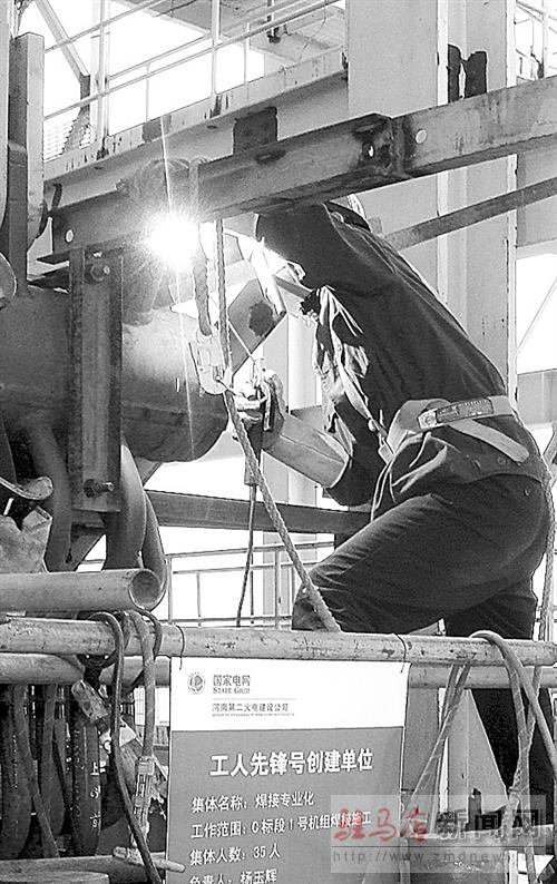 近日,國(guó)電駐馬店熱電廠2×330MW機(jī)組擴(kuò)建工程建設(shè)已進(jìn)入最后攻堅(jiān)階段,為加快進(jìn)度,建設(shè)單位開展了“爭(zhēng)創(chuàng)工人先鋒號(hào)”勞動(dòng)競(jìng)賽活動(dòng)。圖為工作人員在