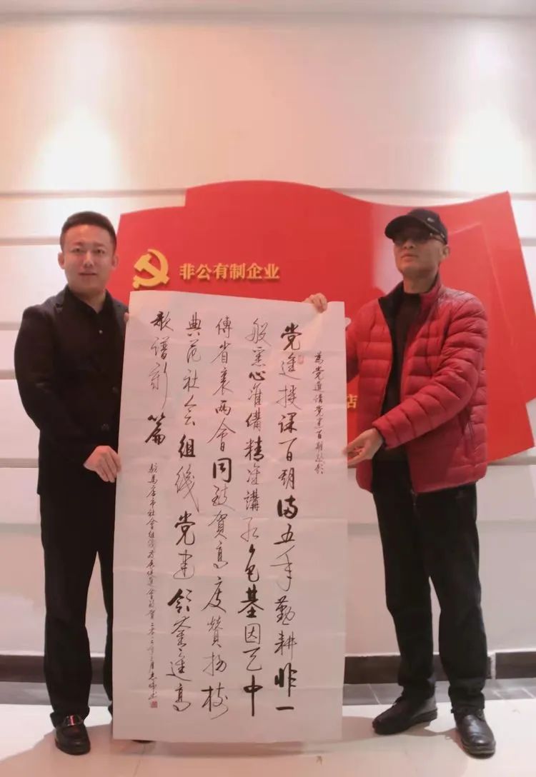 “黨進授課百期滿,五年勤耕非一般。悉心準備精準講,紅色基因天中傳;省里“兩會"同致賀,高度贊揚樹典范;社會組織黨建領,奮進高歌譜新篇!”市社會組織發(fā)展促進會會長余國軍為黨進贈送書法家作品,向《黨進講黨建》播出百期表示熱烈祝賀。
