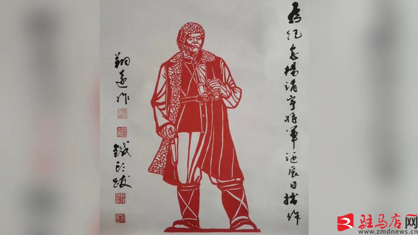 今年,趙翔遠(yuǎn)匠心創(chuàng)作的刻紙作品《民族英雄楊靖宇》驚艷亮相。他以毫米級(jí)的細(xì)膩刀法,勾勒出楊靖宇將軍剛毅的面容與不屈的身姿,線條遒勁如鐵、情感飽滿深沉,將英雄氣概與家國情懷鐫刻于紙上。該作品受邀參展駐馬店市紅色文化研究會(huì)“紀(jì)念中國人民抗日戰(zhàn)爭(zhēng)暨世界反法西斯戰(zhàn)爭(zhēng)勝利80周年”書畫展并斬獲佳績(jī),更于10月先后被楊靖宇殉國地靖宇縣、安葬地通化市永久收藏,成為紅色文脈與非遺技藝交相輝映的生動(dòng)見證。