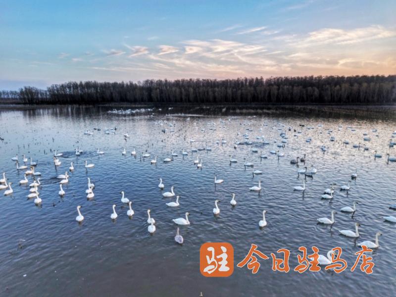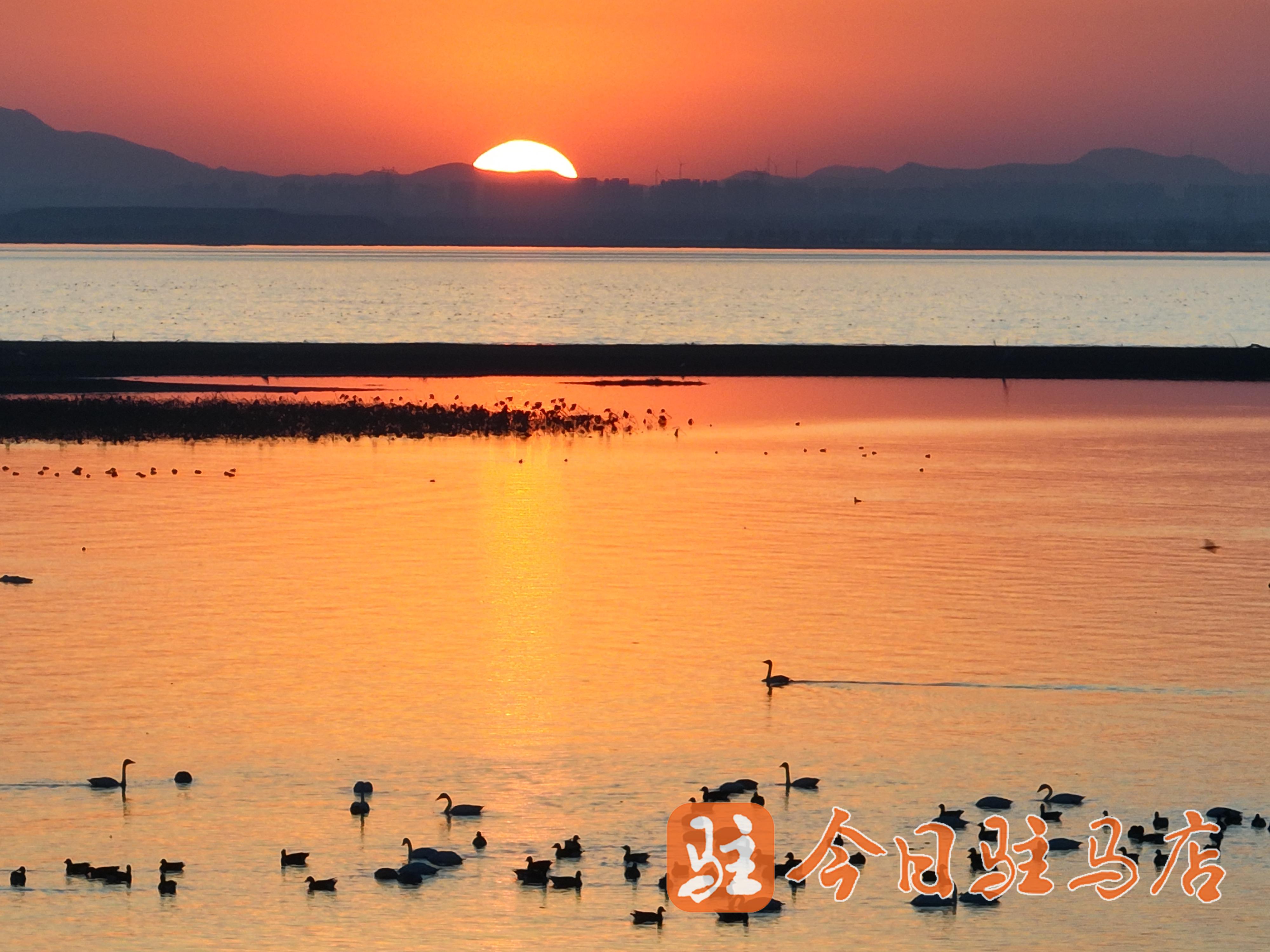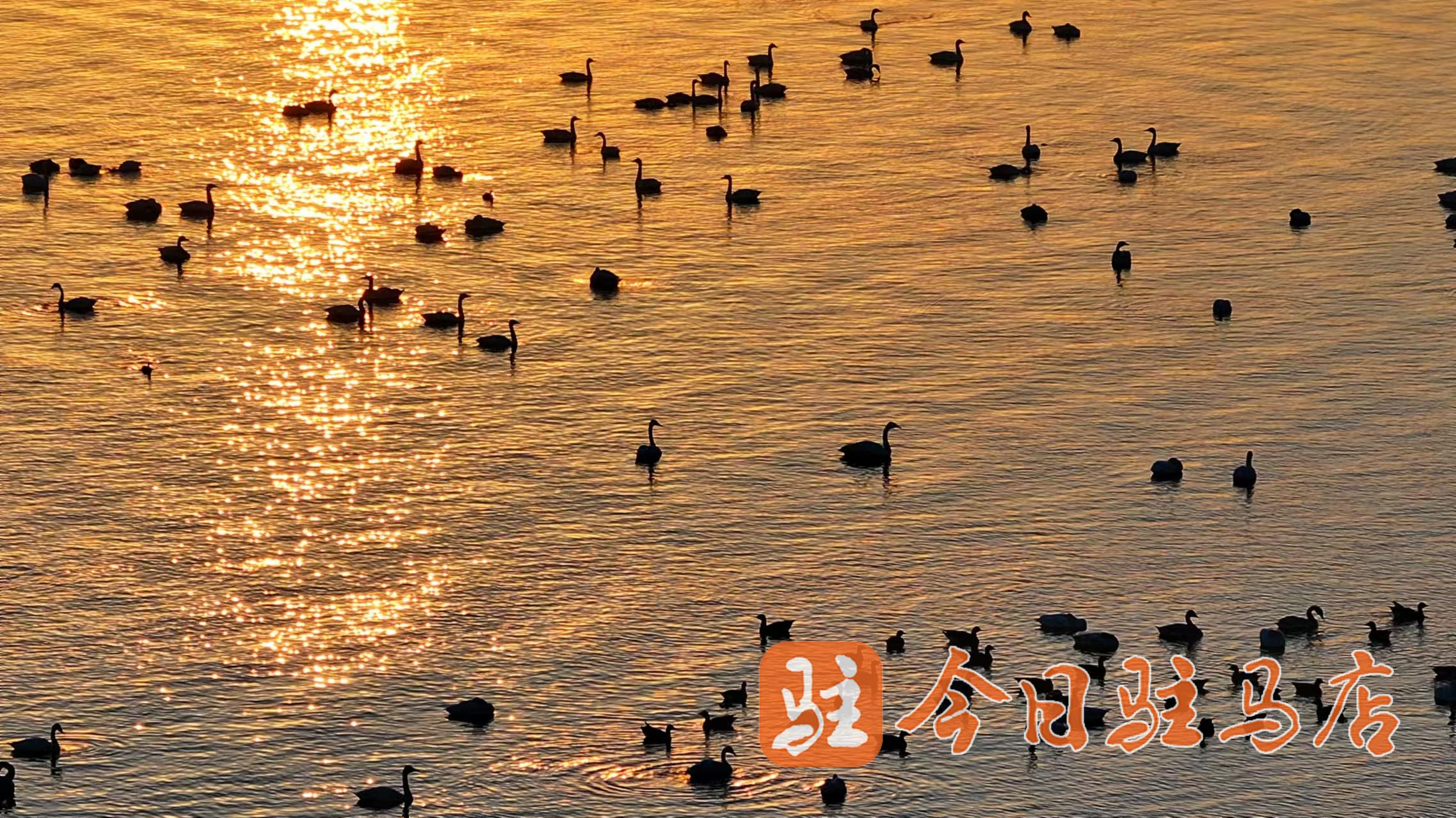 隨著夕陽(yáng)西下,天鵝在霞光中漸次歸巢。這幅由天鵝、湖水與天空共同勾勒的冬日勝景,正成為駐馬店市生態(tài)保護(hù)成效的生動(dòng)注腳。