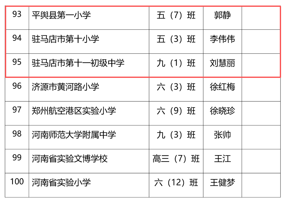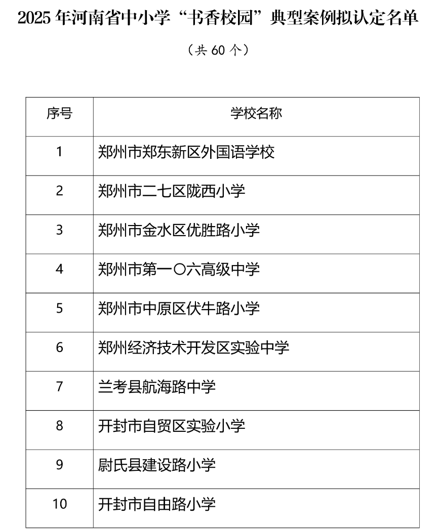 根據(jù)《教育部等八部門關于印發(fā)〈全國青少年學生讀書行動實施方案〉的通知》(教基〔2023〕1號)、《教育部辦公廳 中央宣傳部辦公廳關于深入實施全國青少年學生讀書行動的通知》(教基廳〔2025〕1 號)、《河南省教育廳等八部門關于印發(fā)〈河南省青少年學生讀書行動實施方案〉的通知》(豫教基〔2023〕44號)、《教育部辦公廳關于開展2025年全國青少年學生讀書行動區(qū)域優(yōu)秀案例征集活動的通知》(教基廳函〔2025〕23號)、《教育部基礎教育司關于建立“書香校園”建設工作臺賬的通知》(教基司函〔2024〕41號)、《河南省教育廳辦公室關于開展2025年河南省中小學生“豫讀愈悅”讀書行動系列活動的通知》(教辦基〔2025〕163號)等文件要求,經(jīng)過學校(班級)申請、各地推薦、專家評審,擬認定鄭州市金水區(qū)等8個地區(qū)為河南省青少年學生讀書行動區(qū)域優(yōu)秀案例,鄭州市鄭東新區(qū)外國語學校等60所學校為河南省中小學“書香校園”典型案例,鄭州市金水區(qū)南陽路第三小學六(3)班等100個班級為河南省中小學“書香班級”典型案例?,F(xiàn)予以公示,請予監(jiān)督。