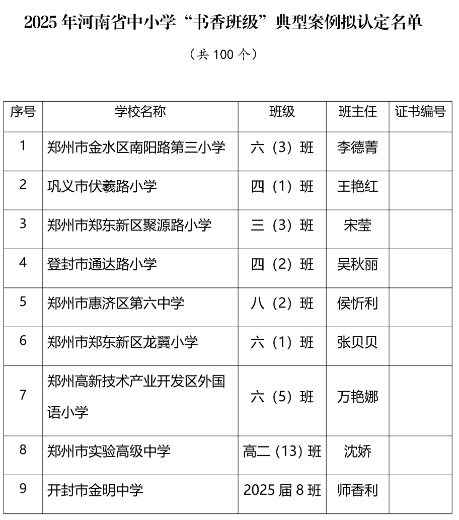 3.2025年河南省中小學“書香班級”典型案例擬認定名單