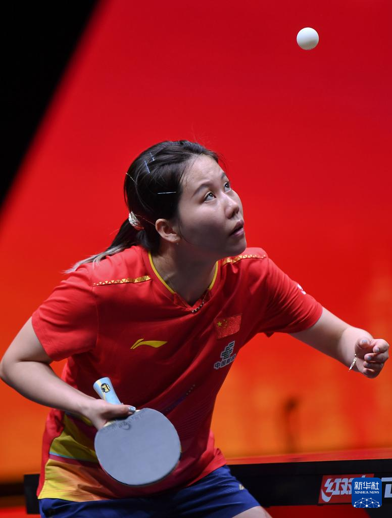 12月10日,中國選手陳幸同在比賽中發(fā)球。