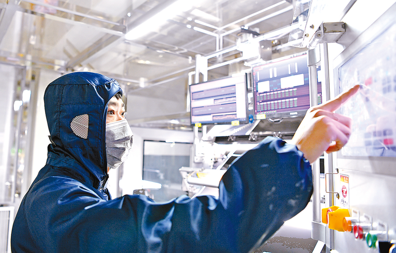 工作人員操控智能化生產(chǎn)設(shè)備。