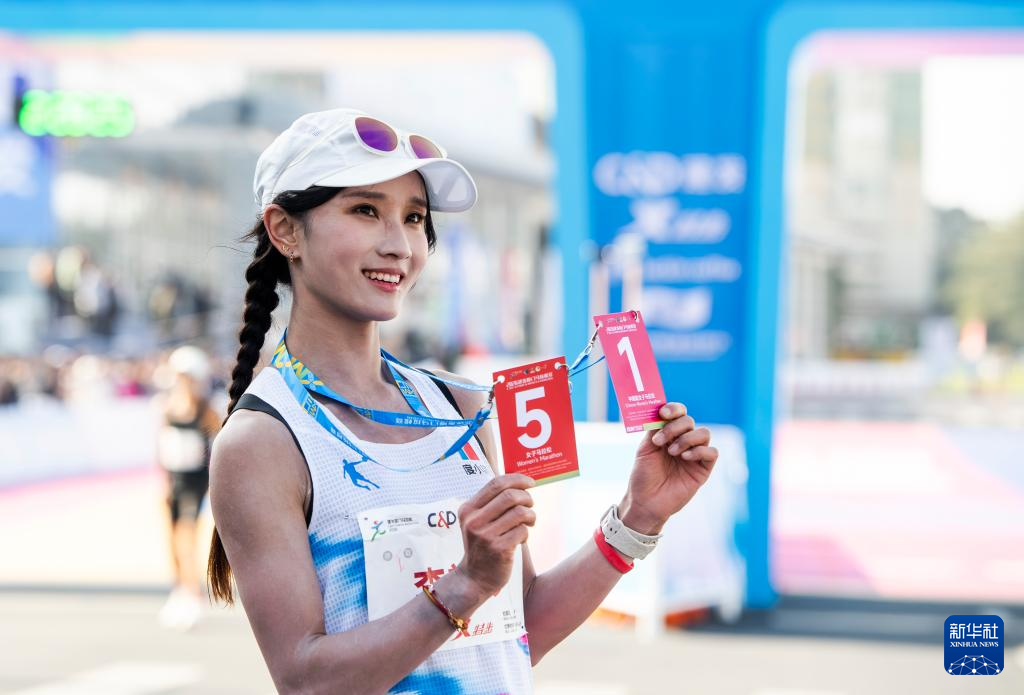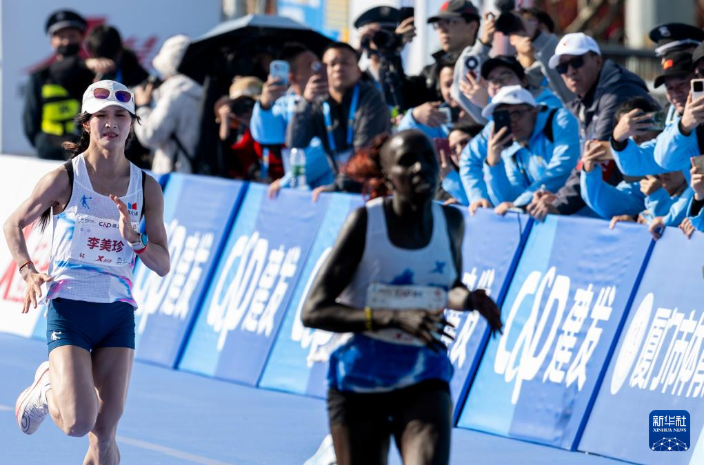 摘要:1月11日,李美珍在比賽中沖過終點線后慶祝。最終她獲得中國籍女子組第一名。當(dāng)日,2026廈門馬拉松賽開賽。