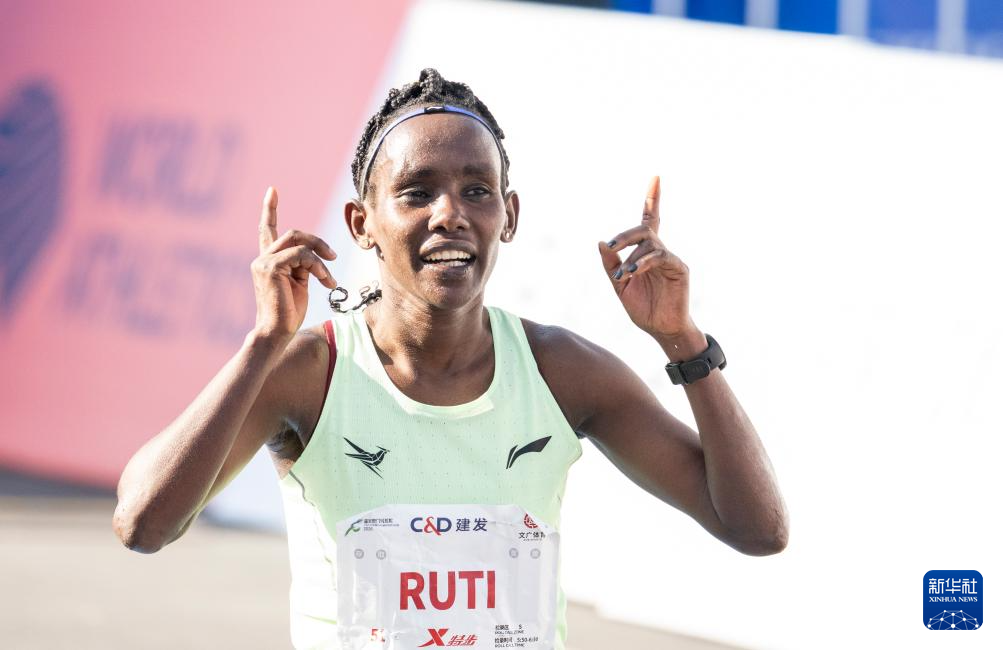 1月11日,埃塞俄比亞選手魯?shù)?middot;阿加·索拉在沖過終點線后慶祝。最終她獲得女子組冠軍。