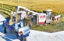 宿鴨湖畔麥浪涌 機(jī)聲轟鳴收割忙